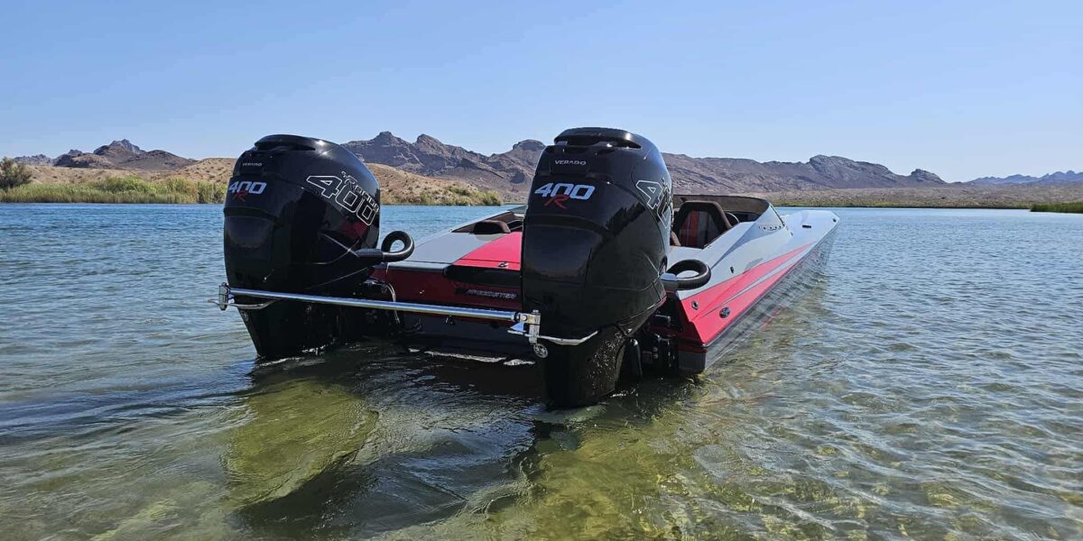 2019 Eliminator Speedster 28’ Twin Mercury Racing 600SCl’s, XR-SSM 2” shorty drives with ITS, monster center tab, Shadow Triple axle trailer with fuel rims – +
